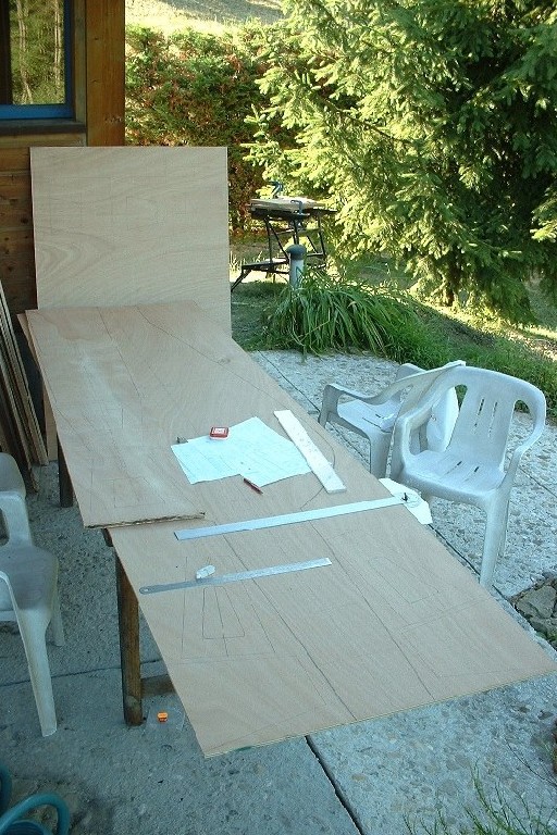 Le tout début : la découpe des panneaux sur la terrasse ...