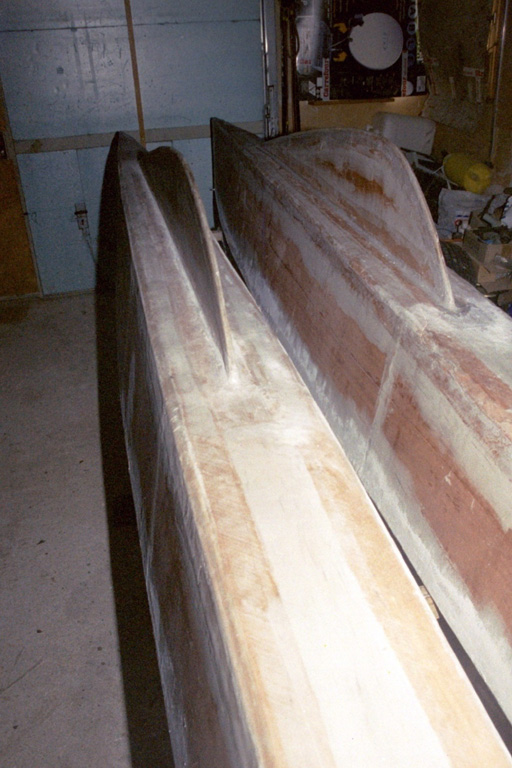 Les deux coques stratifiées et mastiquées, prêtes à recevoir la peinture époxy