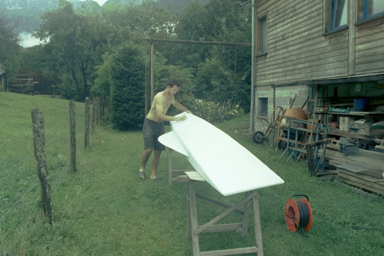 Ponçage de la peinture époxy, avant l'application des 2 couches de peinture polyuréthane de protection (notamment contre les rayons ultra-violets)