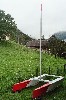 Ca y'est ! En ce lundi 12 septembre, le grand moment est arrivé ! Celui du premier montage de mon bateau, avec haubans provisoires en polyamide (en ficelle, quoi !) pour prendre les mesures nécessaires à la fabrication des câbles en acier ... Bref, un vrai moment de plaisir pour moi, il a vraiment la classe mon bateau ! Plus que les voiles et le trampoline et c'est parti !!!