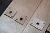 La fabrication des poutres s'est déroulée en plusieurs étapes. Tout d'abord, il a fallu préparer les panneaux, pré-découper les encoches pour l'assemblage par lamelles 'Lamello', et ajuster le tout pour obtenir un assemblage correct entre les différents éléments.