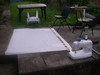 | mise en place ... | ... et couture ... | ... des ourlets de trampoline | la couture, c'est fini pour cette fois ! |