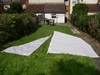 Made in England ! En effet, j'ai emmené tout le matériel pour les réaliser sur le lieu de mes études, puisque je me trouvais de l'autre côté de la Manche ... Le temps de trouver une bonne machine à coudre (machine domestique capable de coudre 9 couches de jean !!!), et les opérations pouvaient commencer : découpe, ralingue, goussets de lattes, renforts, velcros, sangles ...