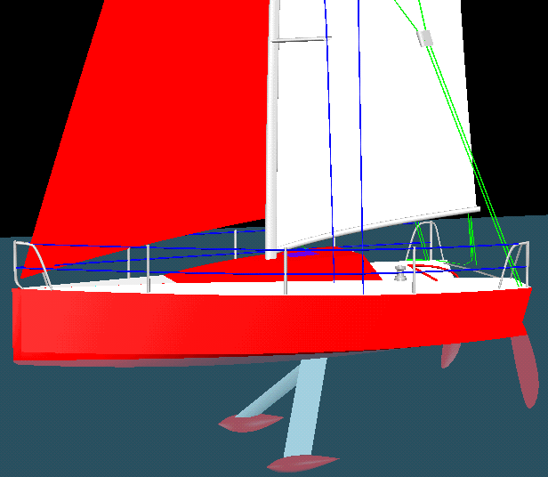 J'ai conçu ce bateau en vue d'une éventuelle participation, un jour, à la Mini Transat, une course transatlantique sur des bateaux de 6.50m de long (voir le site www.classemini.com). Pour l'instant, le projet est un peu arrêté, études oblige, mais c'est vrai que c'est un de mes rêves ... J'ai conçu ce bateau afin qu'il soit le plus économique et simple à construire pour un amateur (moins de 30 000 ?) ... Peut-être ne verra-t-il jamais le jour mais c'est une expérience très intéressante de concevoir un navire répondant à une jauge très précise.