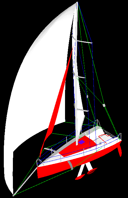 Conçu à partir de la jauge mini pour la Mini Transat, ce projet a surtout été une expérience très intéressante car il fallait respecter un certain nombre de paramètres ... En attendant d'en faire un vrai proto, un jour, peut-être ...